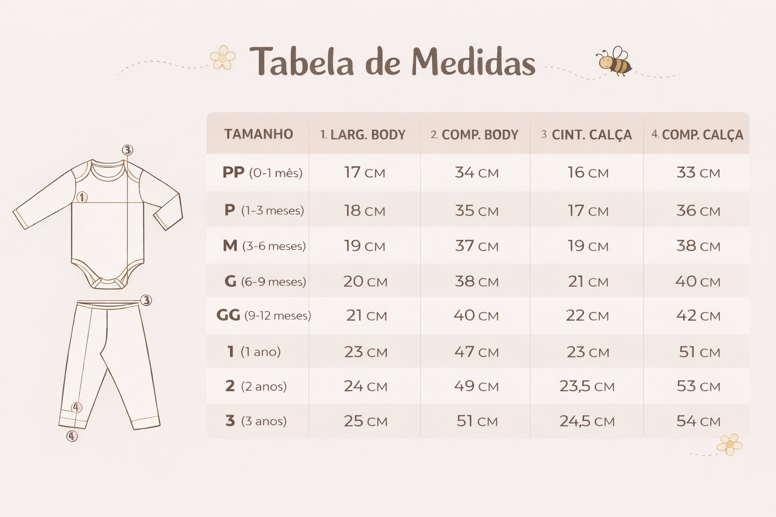 Nos tamanhos grandes 1, 2 e 3 o body possui fechamento por botão de pressão no ombro.